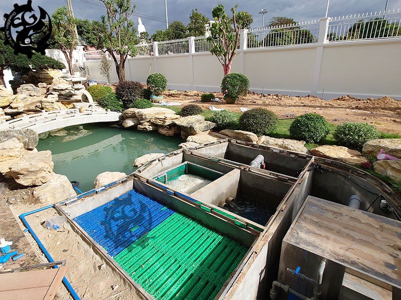Công trình lần này, SG Drumfilter được khách hàng tin tưởng triển khai lắp đặt hệ thống lọc cho hồ cá Koi sân vườn có dung tích 40 khối với mẫu máy lọc Drum Filter có tổng công suất 100 khối/giờ.