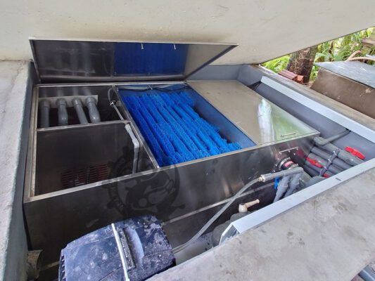 Công trình lắp đặt Drum Filter lọc nước hồ koi 10 khối trong nhà